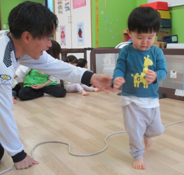 縄の上をピョンピョンと跳んだり、またいで歩いたり、