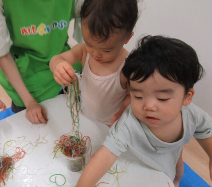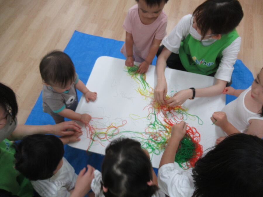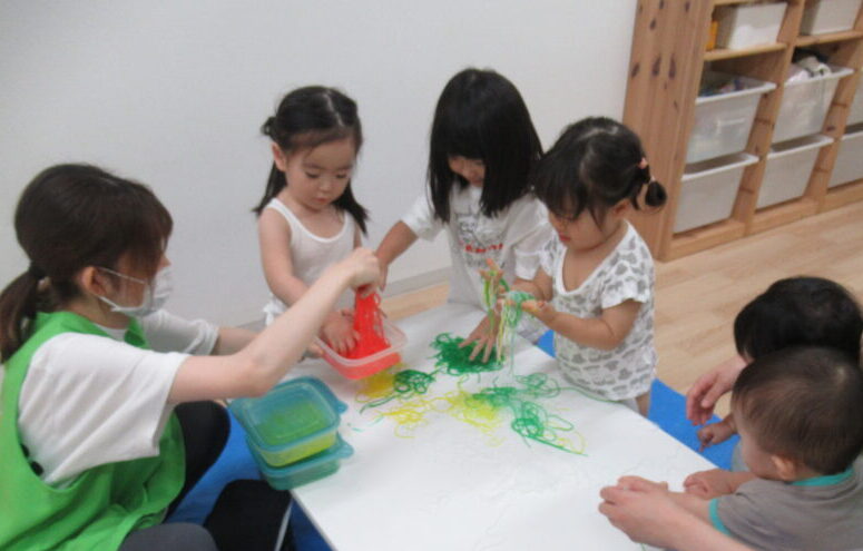 口に入れないように十分に気を付けて遊びました。(食紅使用)
