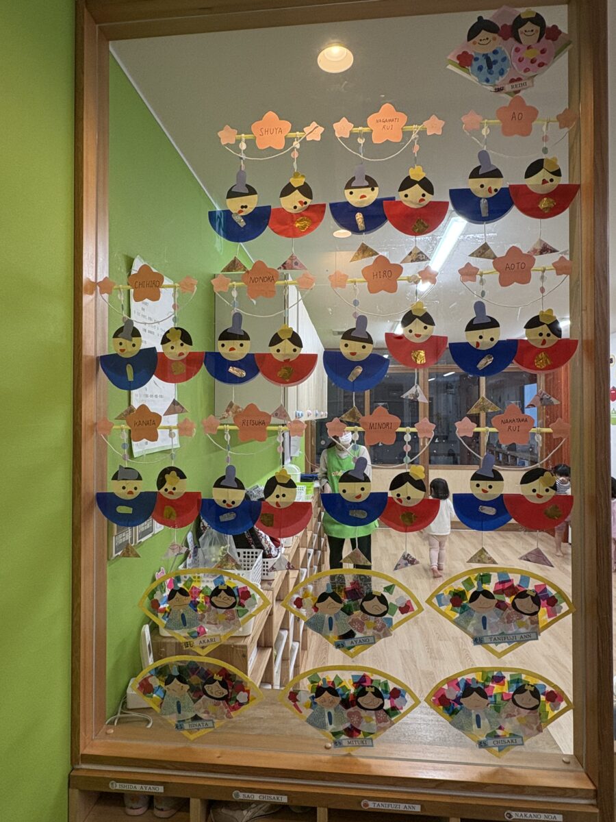 ひな祭りの作品が玄関壁面に飾ってあります。