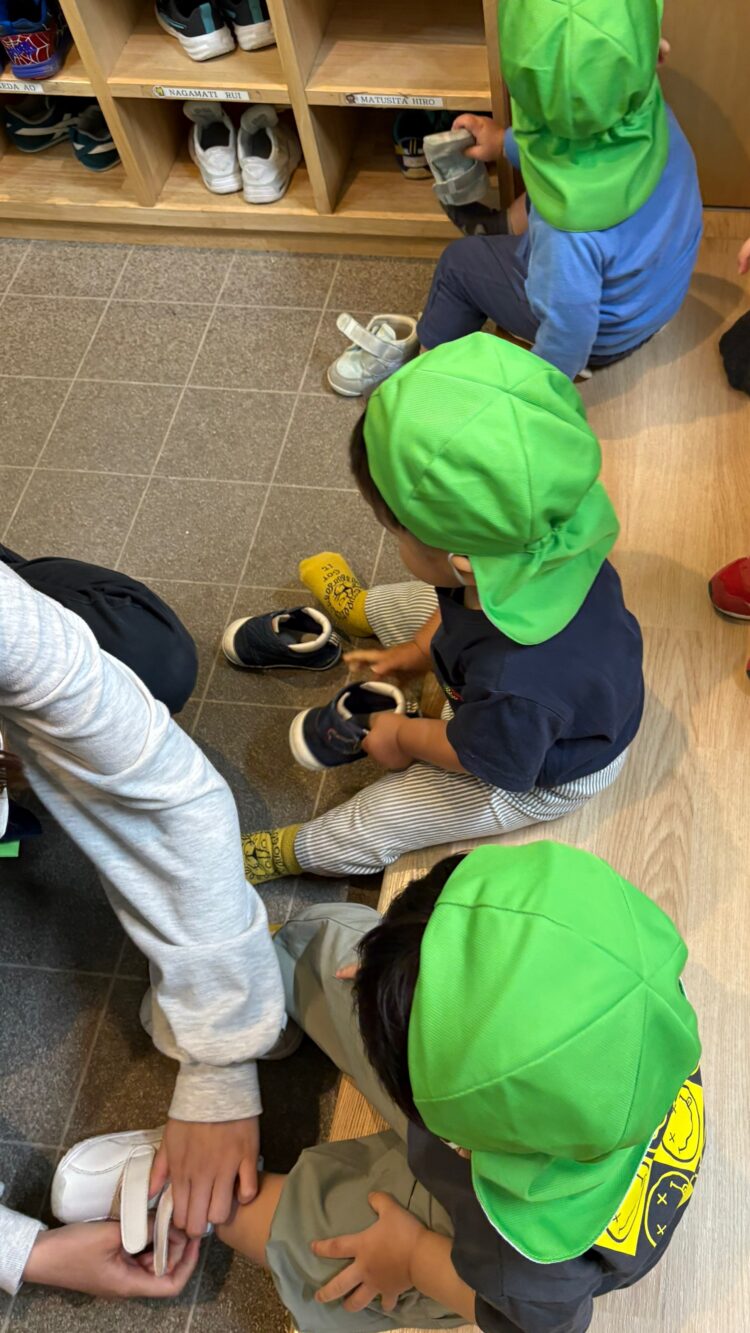 先生と一緒に靴箱から自分のシューズを出して履きます👟