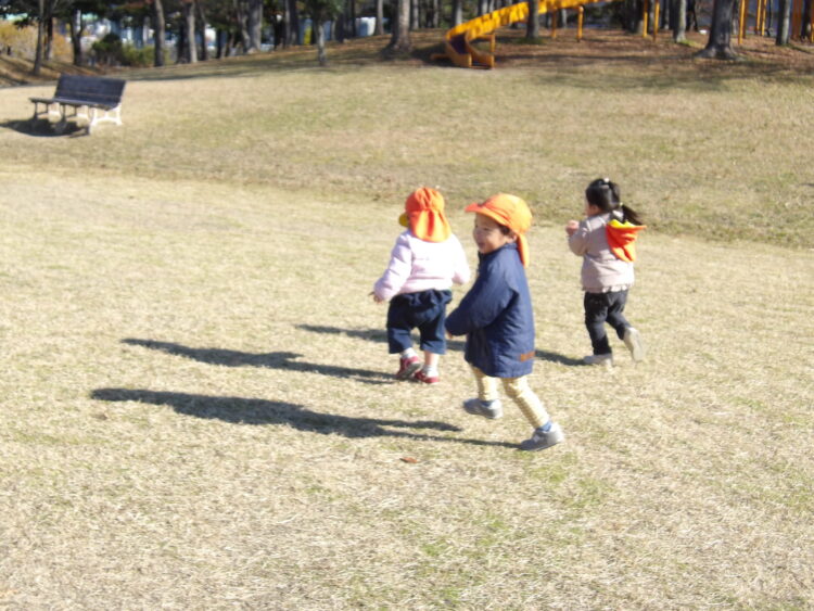 公園に着くと、バッグをさげて、あちらこちらへ散策に行く子ども達です♪