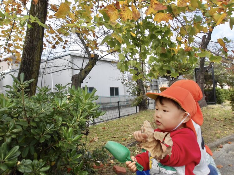 大きな葉っぱを見つけて嬉しそうでした![]()