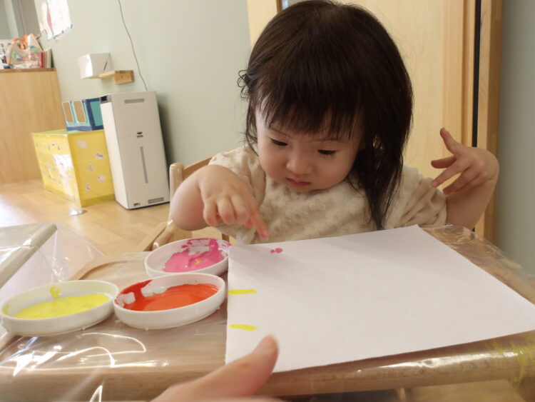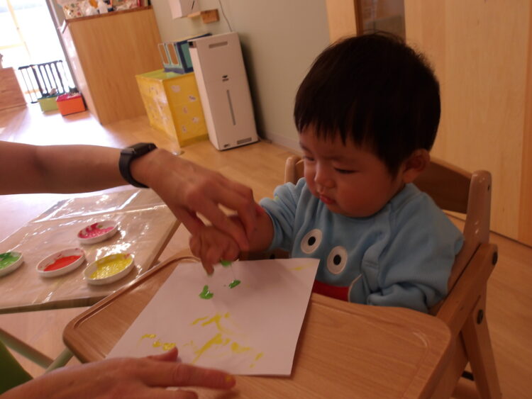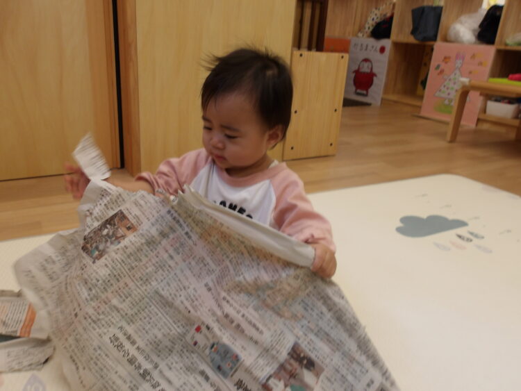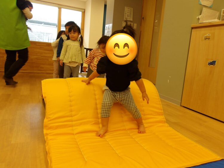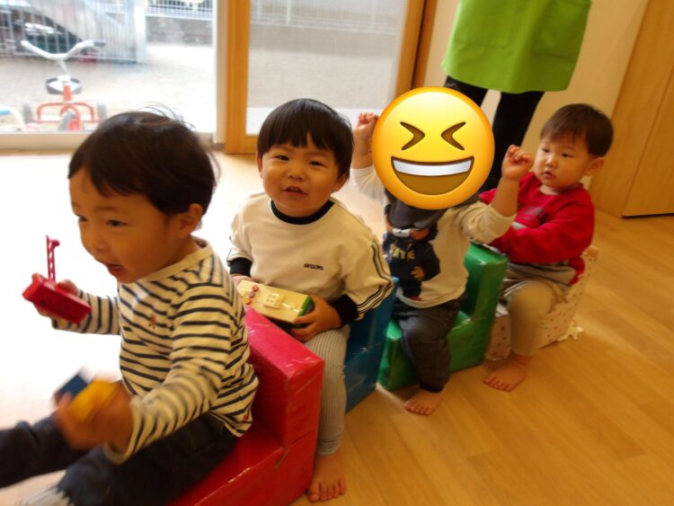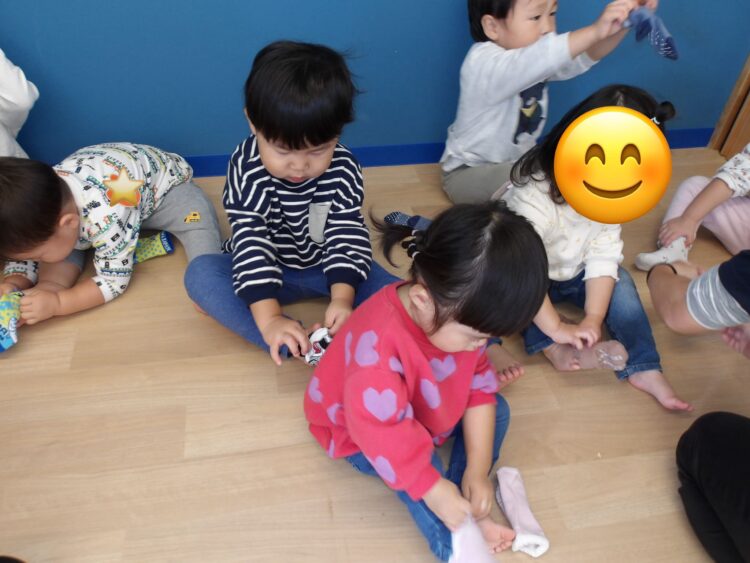 保育士がまず履く見本を見せてから、子どもたちに靴下を渡すと、みんなとても真剣に自分で履こうと頑張っていました🤩
