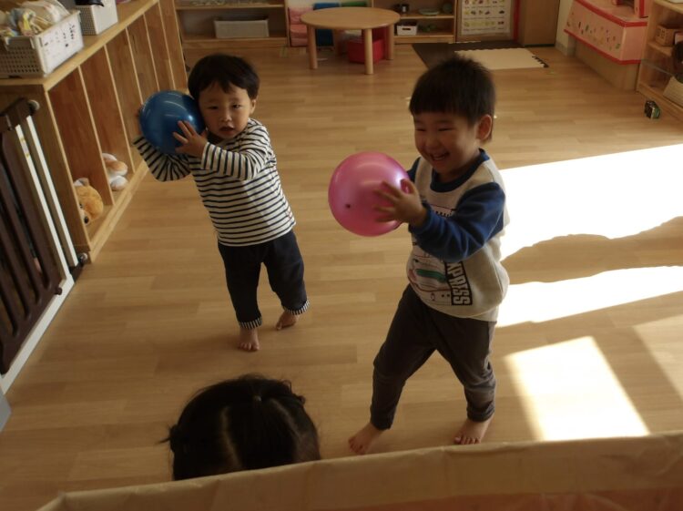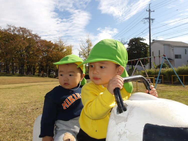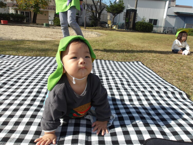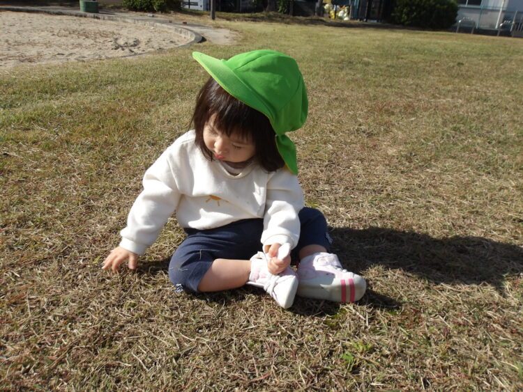 今日はあたたかい日になり、園庭でのんびり遊びました!