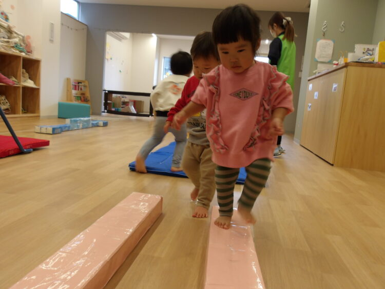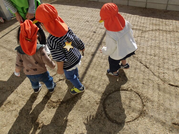 他にも、地面に描いた線をたどったりジャンプしたりして遊びました!