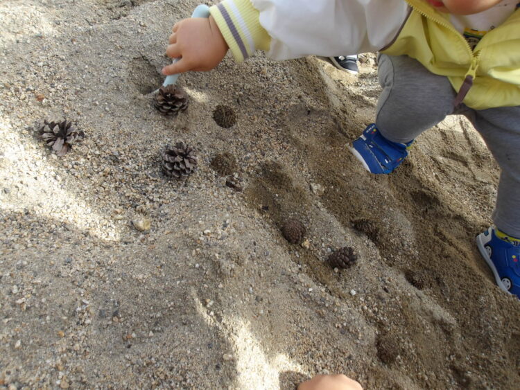 園庭ではどんぐりや松ぼっくりで遊びました🍂