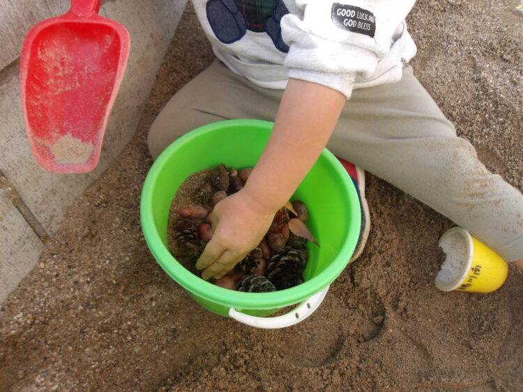 バケツに集めたり、砂に埋めて掘り起こしたり、楽しそうです🎶