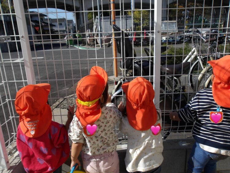 散歩に行っていたひよこ組さんが帰ってくると、みんなでお出迎えするかわいいあひる組さんさんでした🥰