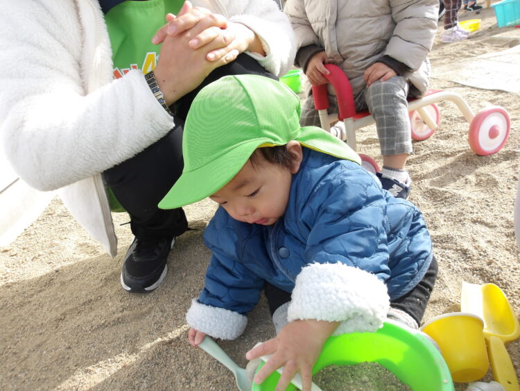 ひよこ組さんはみんな砂遊びに夢中〜![]()