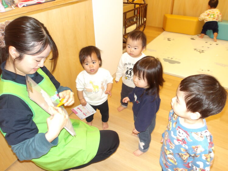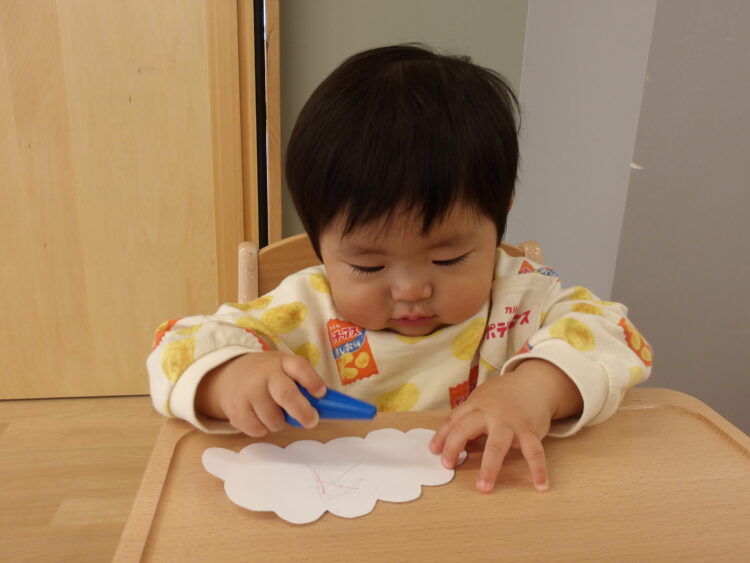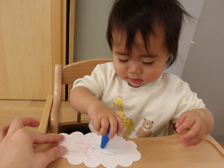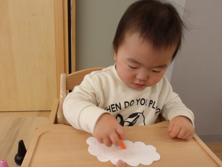 どの子もクレヨンに興味津々で早くやりたい〜とワクワクしていました![]()