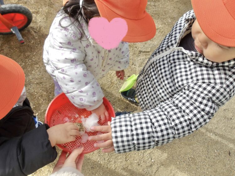 「つめたい!」と言いながらも、みんな嬉しそうに雪を触っていました❄️