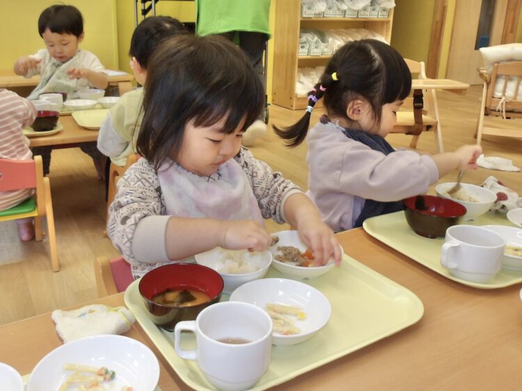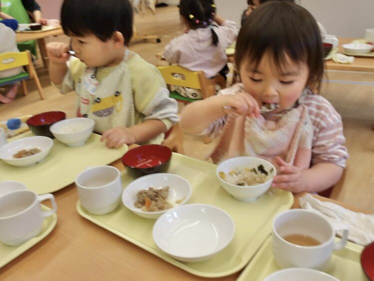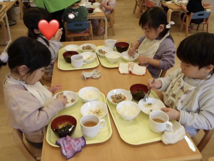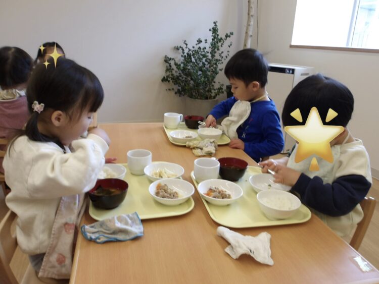 給食の時間が大好きなあひる組さんも、今日もモリモリ食べました💪
