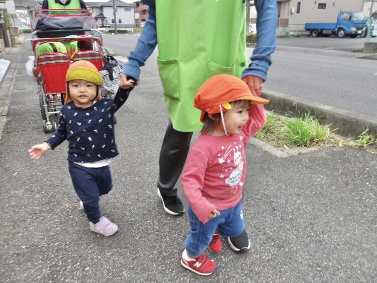 その後は、あひる組さんとひよこ組さんで勝川公園までお散歩に行きました![]()
