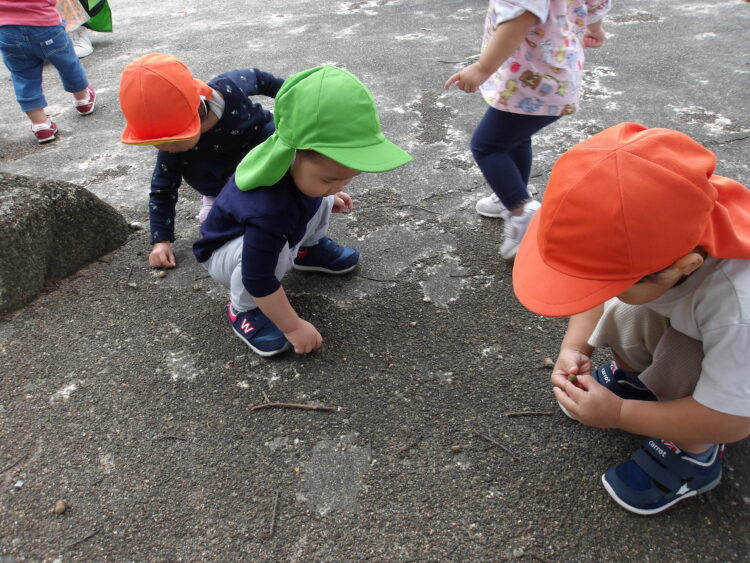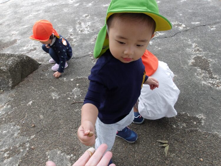 普段よくお散歩をしに行く公園にはどんぐりがあまり無いので、初めて触った子もいたかもしれないですね![]()