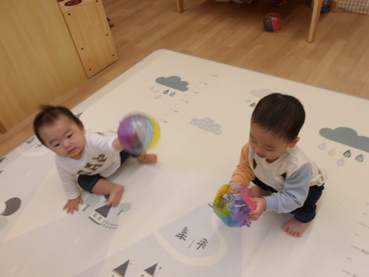 『そーれ!』っと投げて大喜びなひよこ組さんです![]()