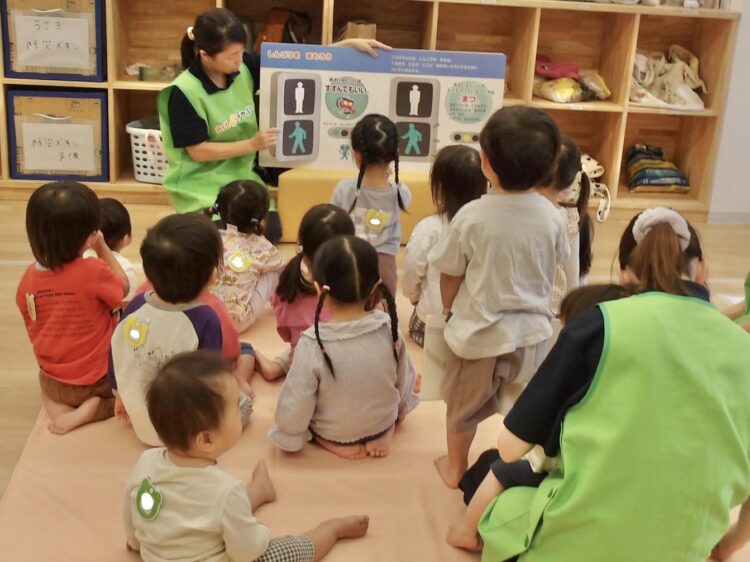大きな絵本を見ながら、渡ってもいい時といけない時を確認しましたよ![]()