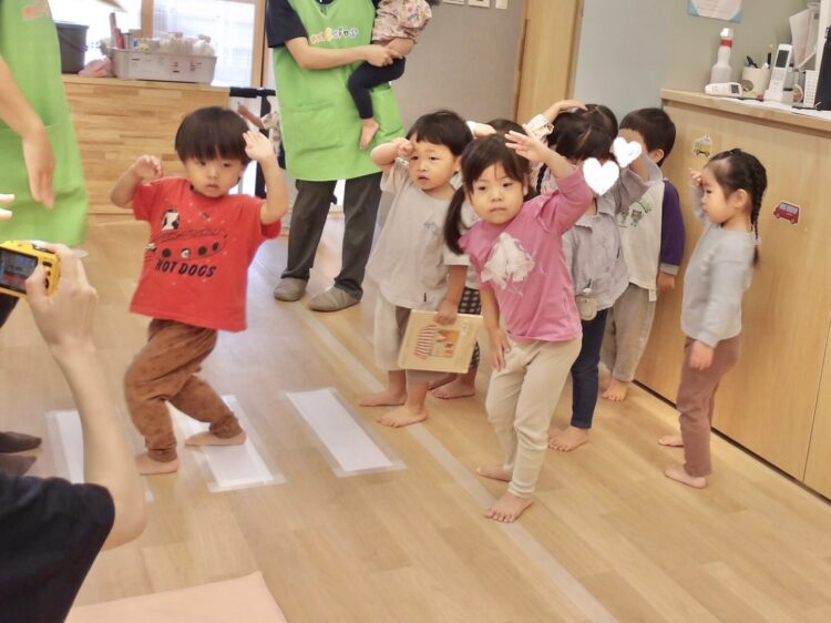 春は怖がってしまう子が多かったあひる組さんですが、自分で立って計ることができるように…!