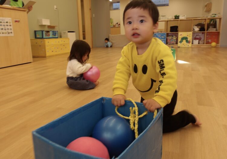 ひよこ号にボールを入れたり、中に入って引っ張ってもらったりして遊びました![]()