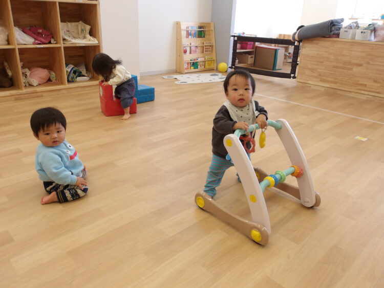 その後は大きなお部屋に自分で歩いたりハイハイをしたりして移動![]()