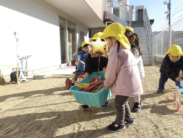 園庭でも遊びました!園庭に出ると玩具を出すお手伝いもしてくれます😊