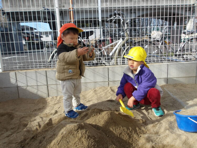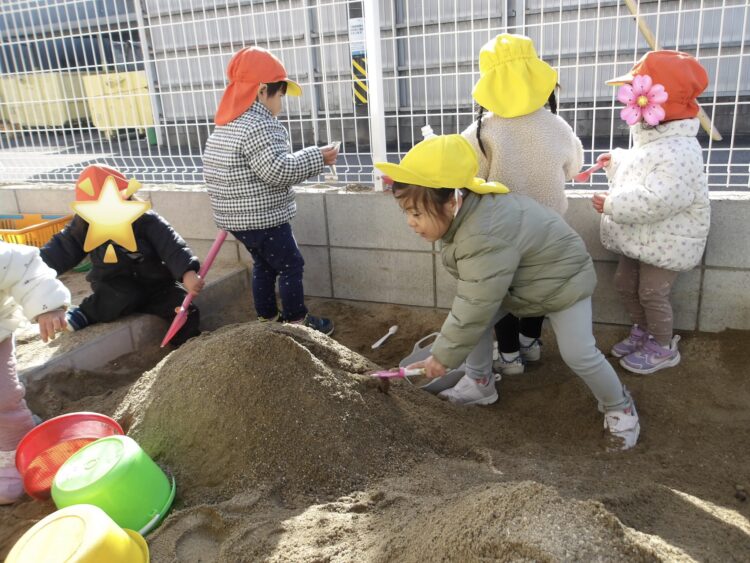 砂場で大きなお山を作りました![]()