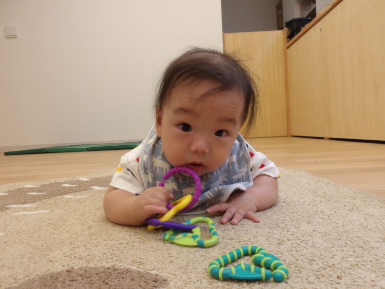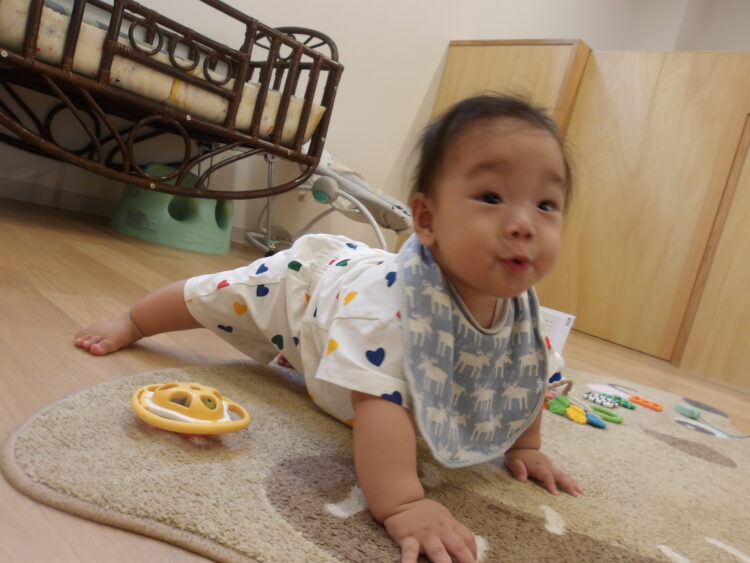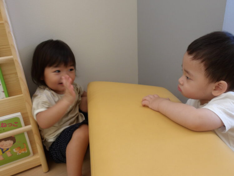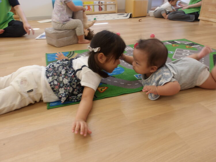 手を振ったり、おもちゃを渡してあげたり、泣いていると頭を撫でたり…