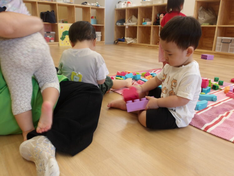 ひよこ組にあるブロックとはまた違うブロックに興味深々!