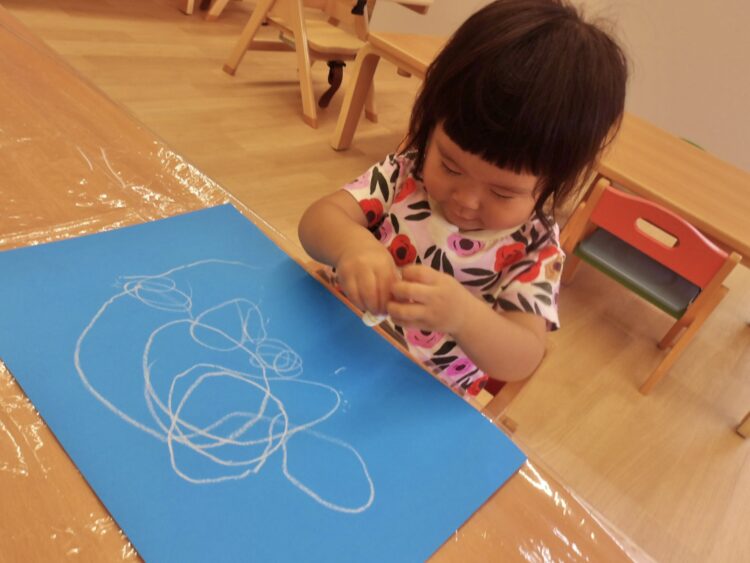 クレヨンを紙にトントンッとしているお友達を見ると、つられて他の子も一緒にトントンしていました![]()