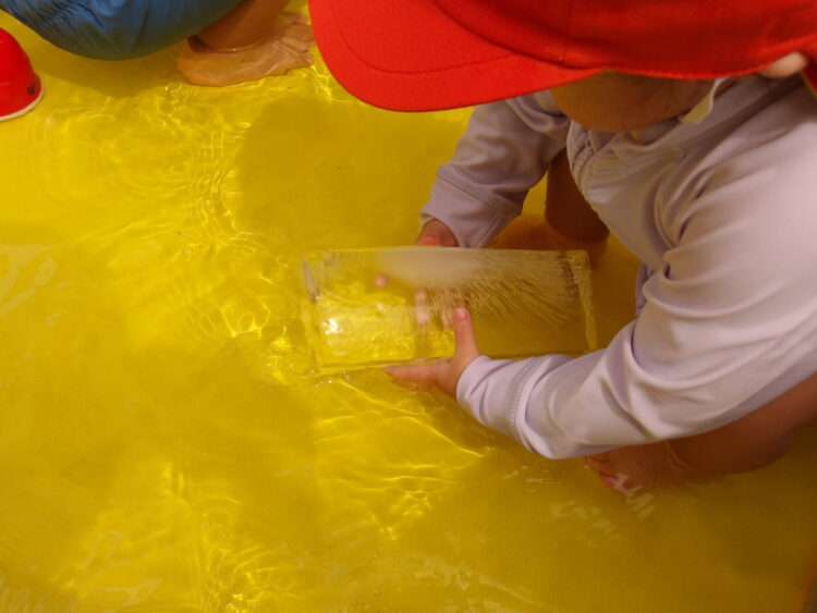 ここにお魚のおもちゃを入れて、ぐるぐるかき混ぜます🐠