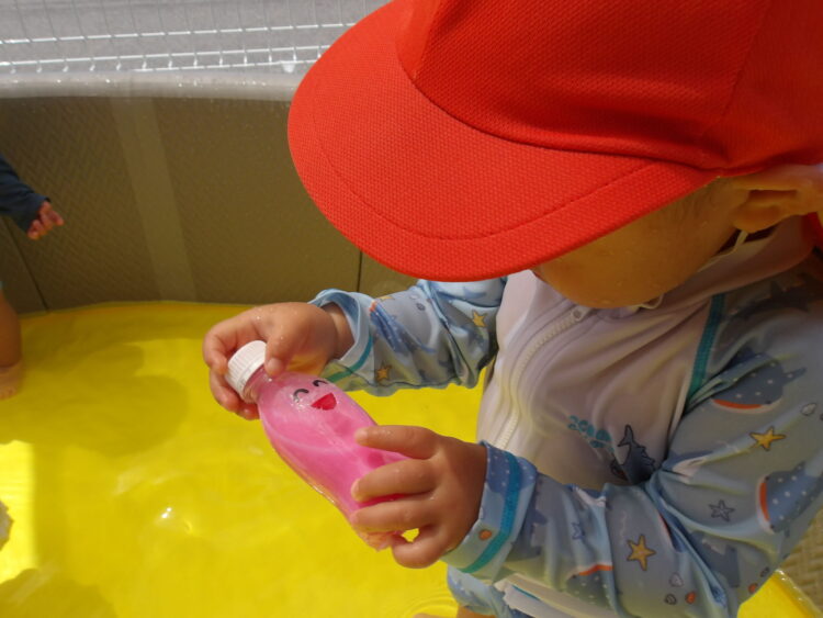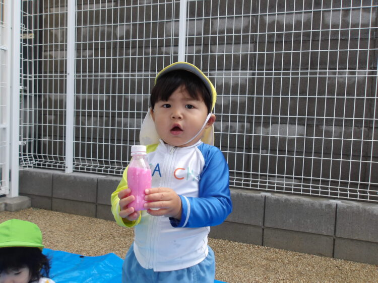 昨日に引き続き、色水ボトルでも遊びました![]()