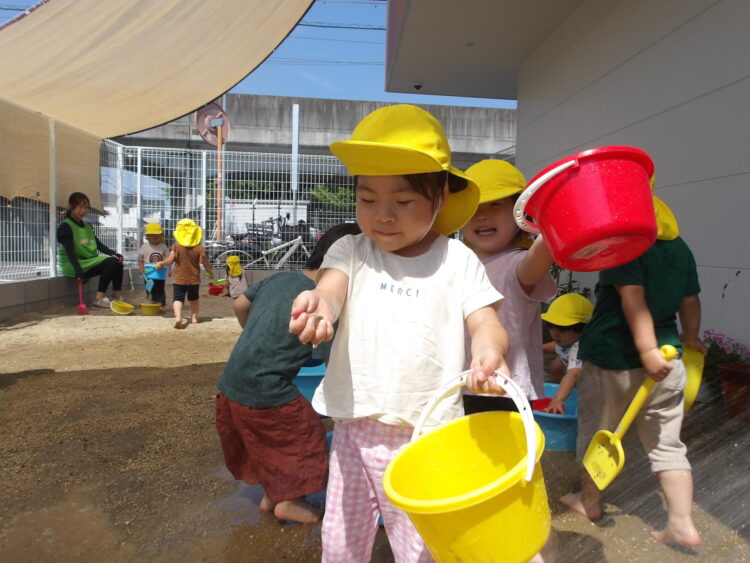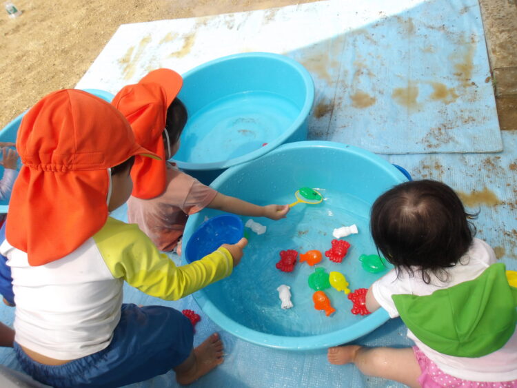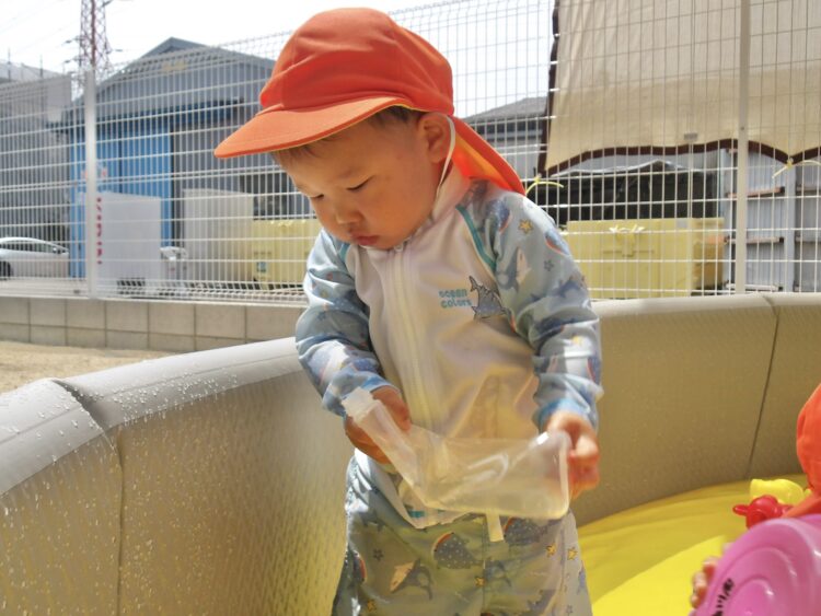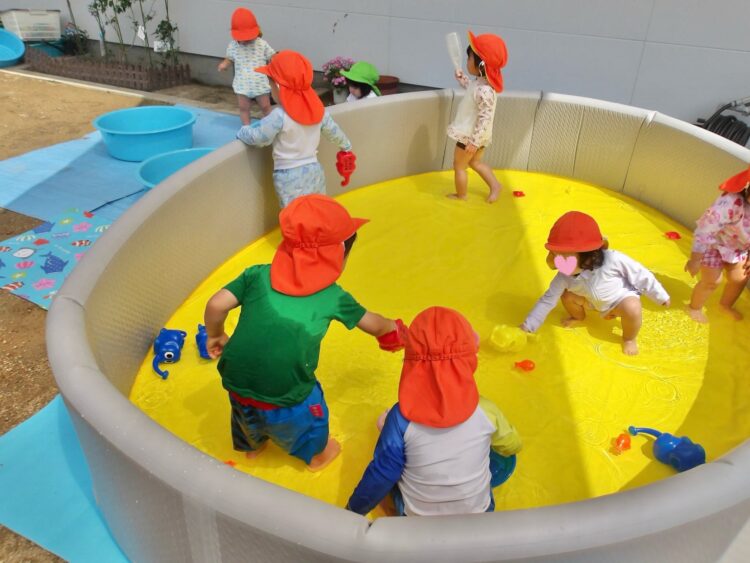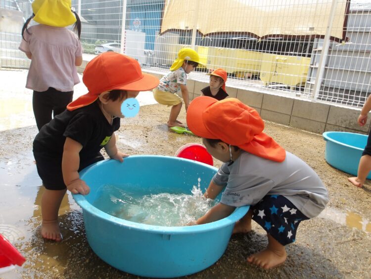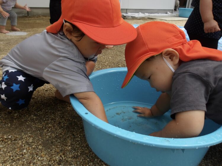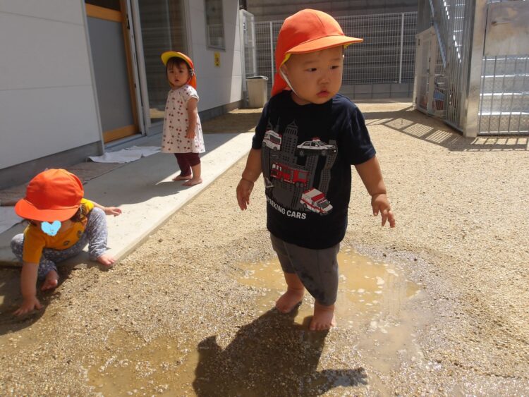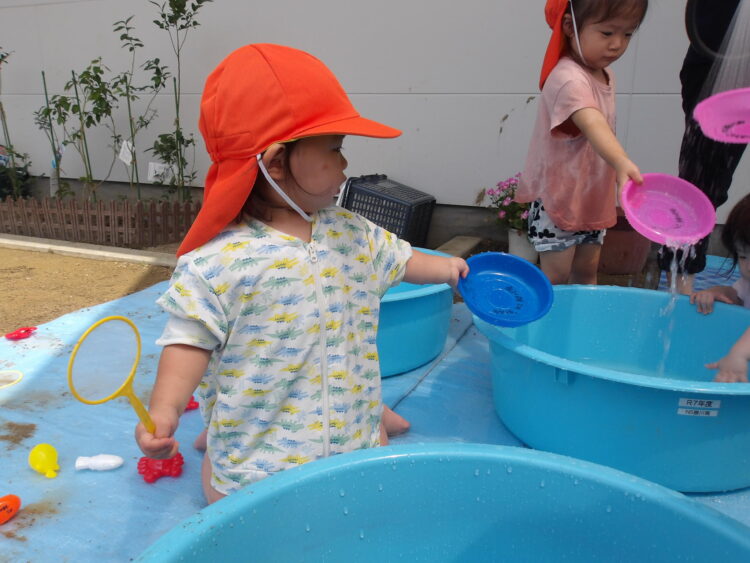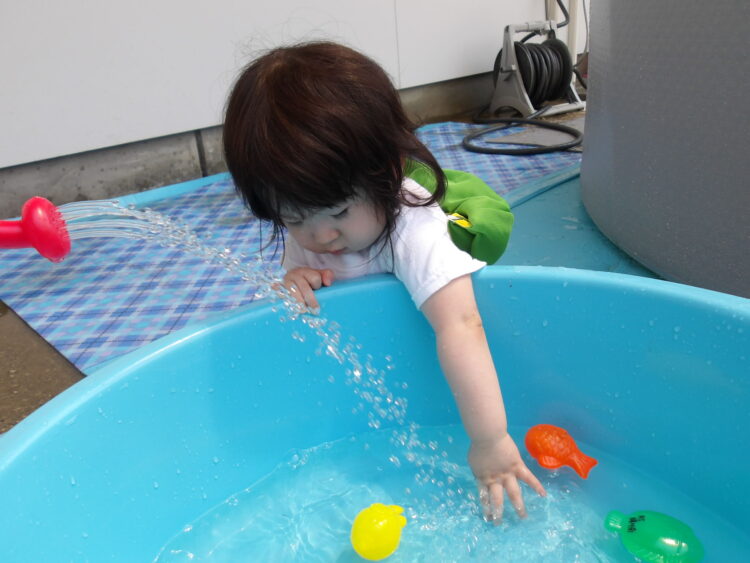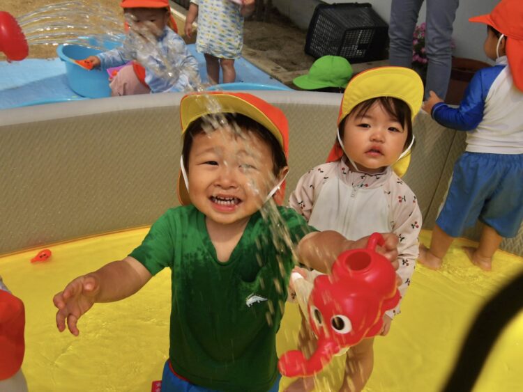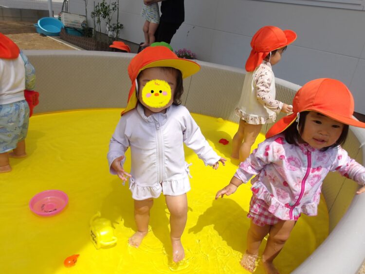 7月に入り、ひよこ・あひるぐみさんは初めての水遊び!![]()