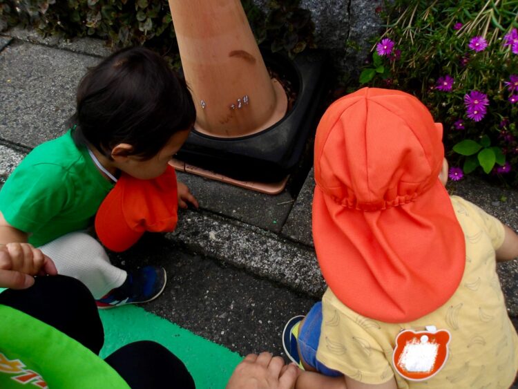 お散歩に出かけると、アリを発見。一生懸命、観察しています🔍