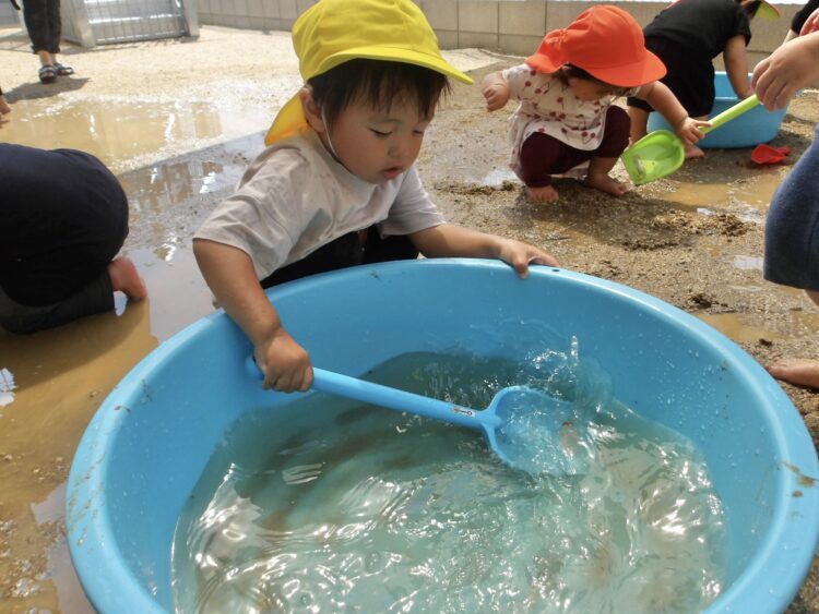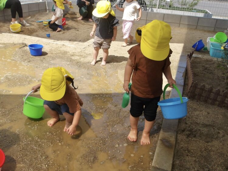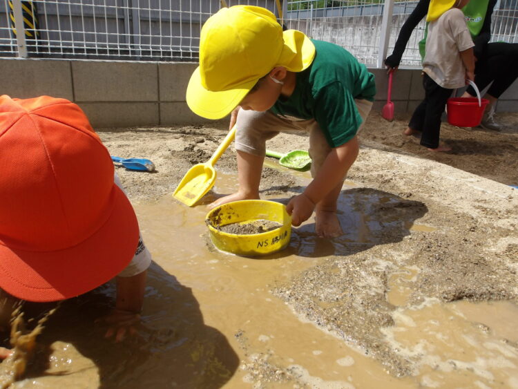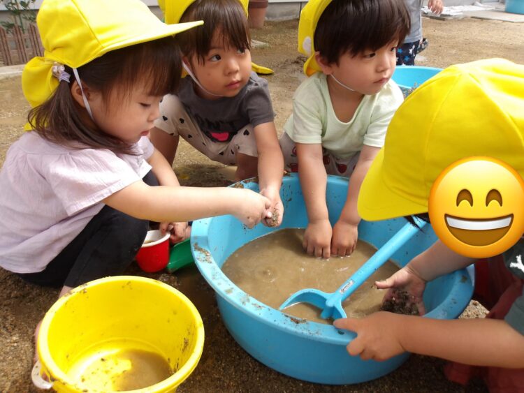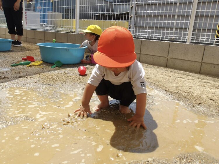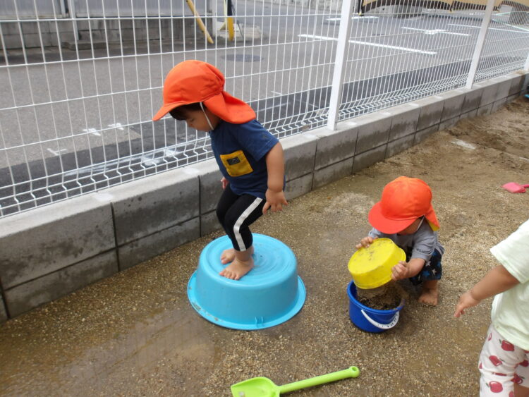 泥んこにも慣れてきて、色々な遊びが生まれています![]()