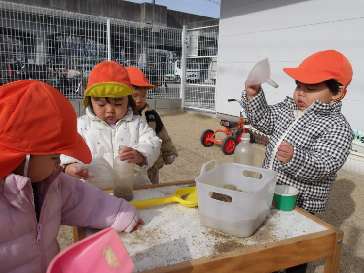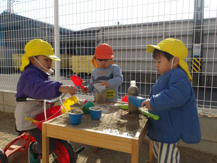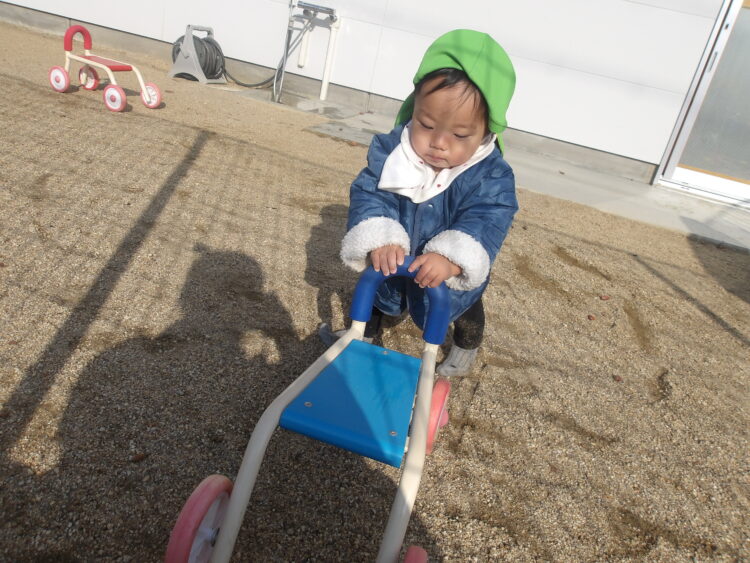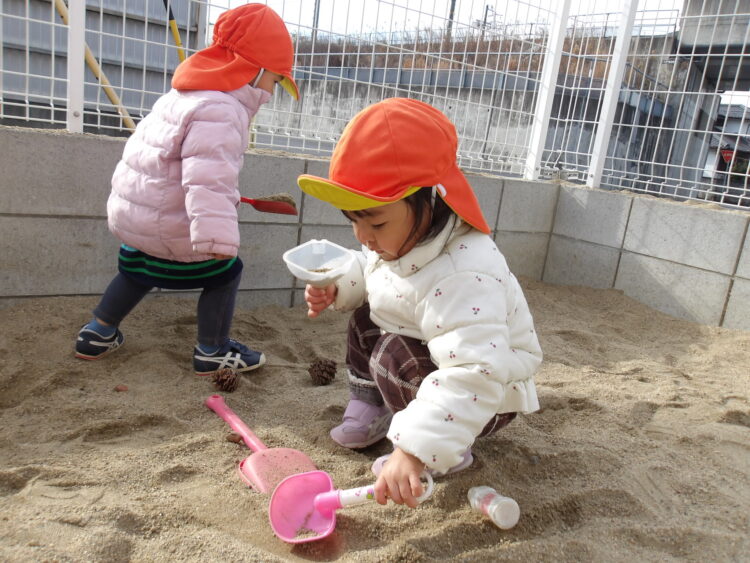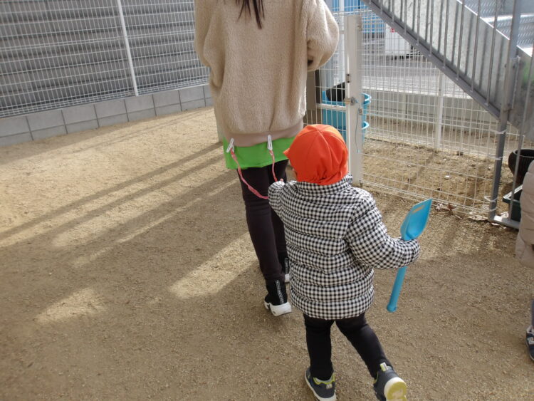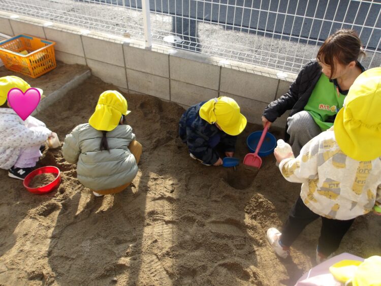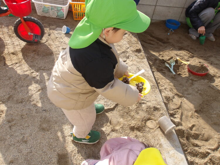 まだ準備していなかった砂場のおもちゃを、一生懸命砂場へ運んでくれる頼もしい姿が見られました💕