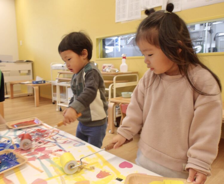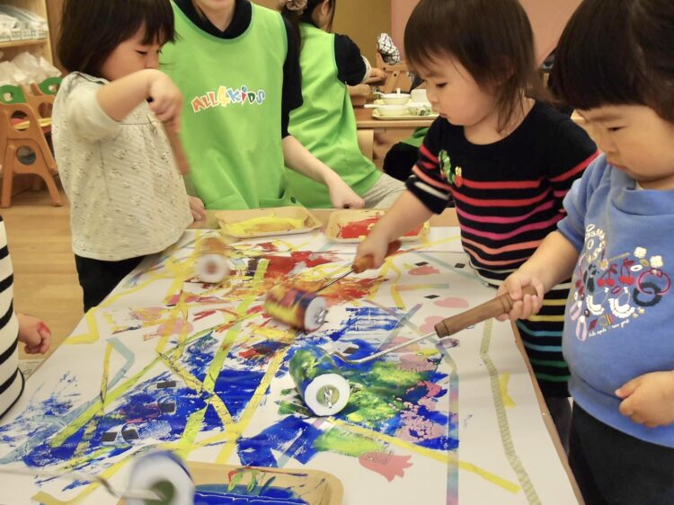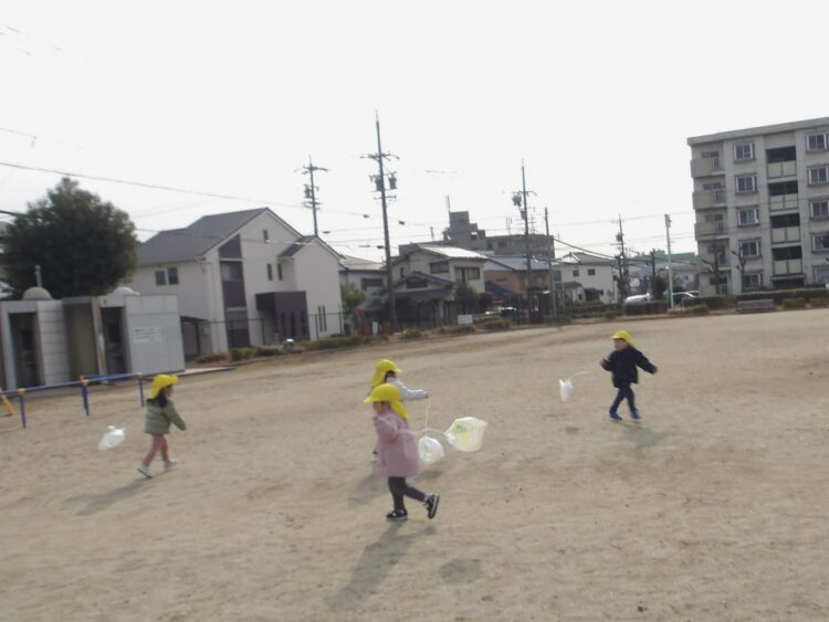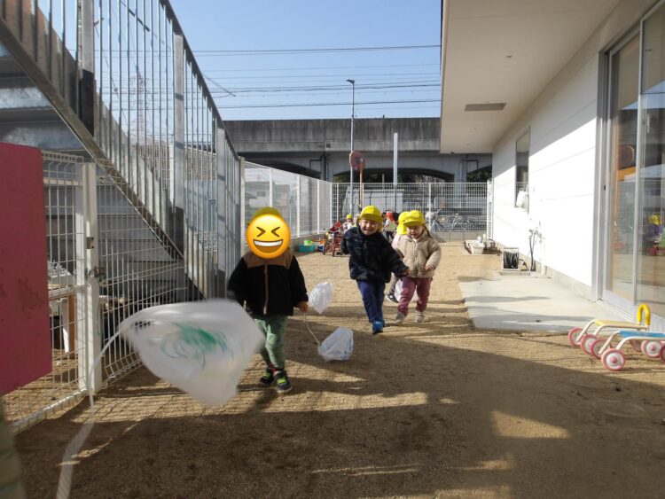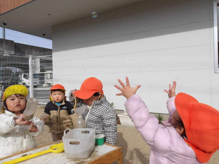 シャボン玉が風に乗って流れていくのを見て大喜びの子ども達でした🫧