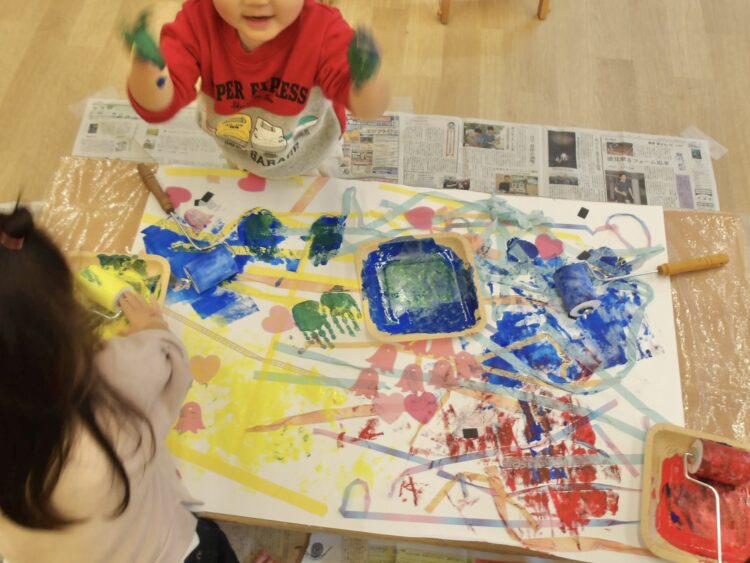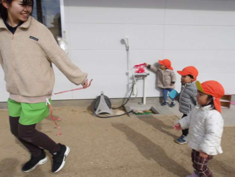 保育士がしっぽを付けて逃げると、みんな楽しそうに追いかけます。