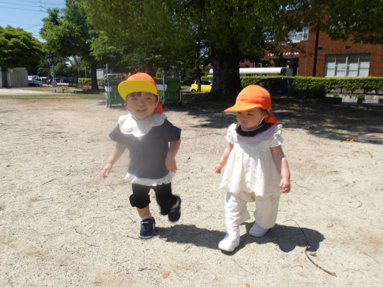 今日はうさぎぐみさんの体操教室の日だったので、あひるぐみさんだけでお散歩に行きました![]()