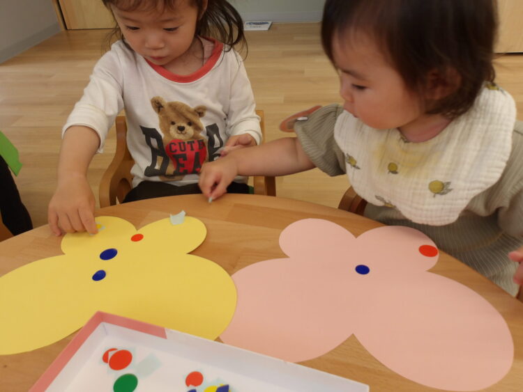 好きな色のちょうちょを選んで、シールを貼っていきます![]()
