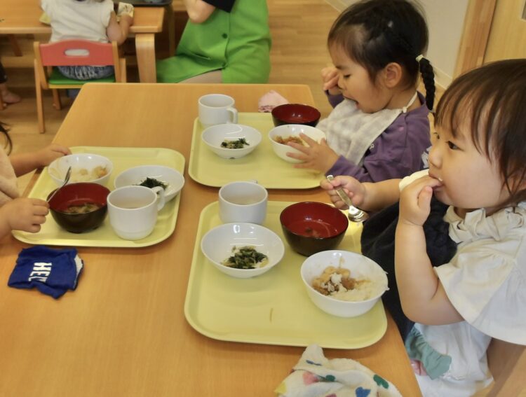 思い切り身体を動かしたあとは、みんな給食をたくさん食べてぐっすりお昼寝をしましたよ![]()