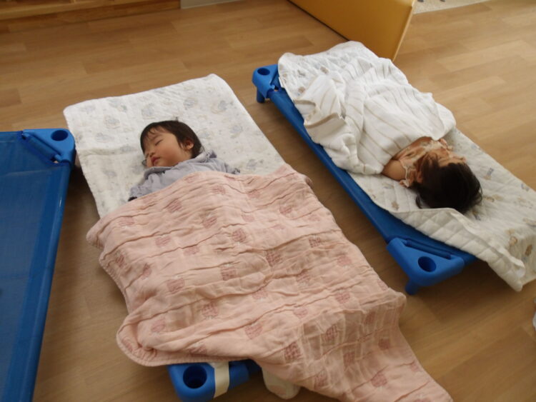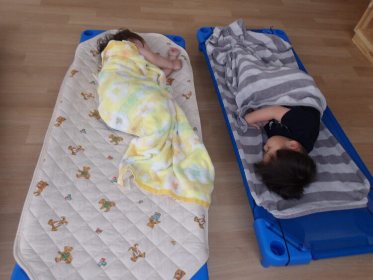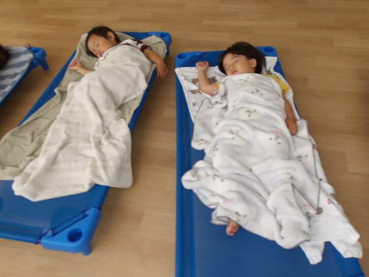 給食を食べてお腹いっぱいになった後は、お昼寝です…💤