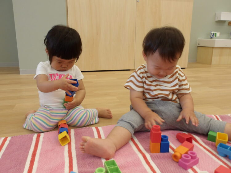 ブロックを一生懸命つなげています。上手につなげられるかな?