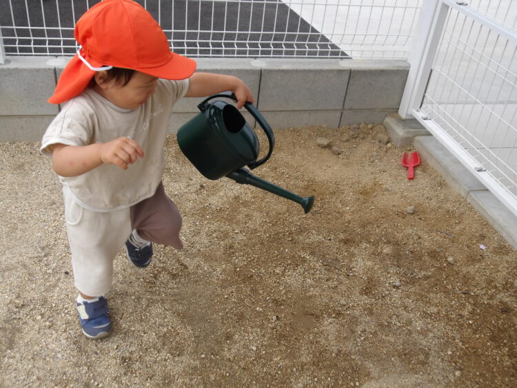 ジョウロを発見!水やりの真似っこ![]()