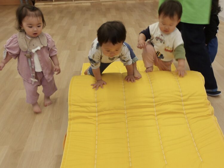 今日のうさぎぐみ、あひるぐみさんは体操から始まりましたよ![]()