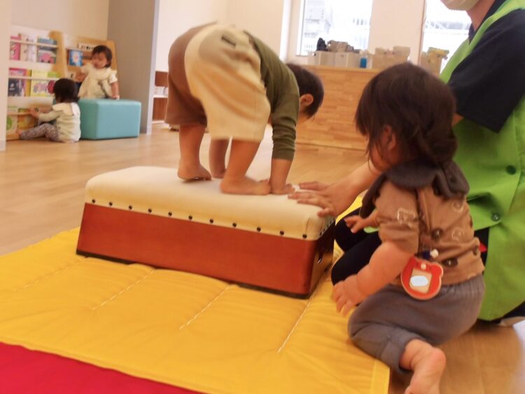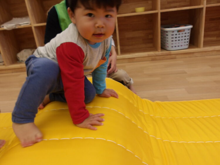 跳び箱の一段目とマットを使って、坂道を作りました!
