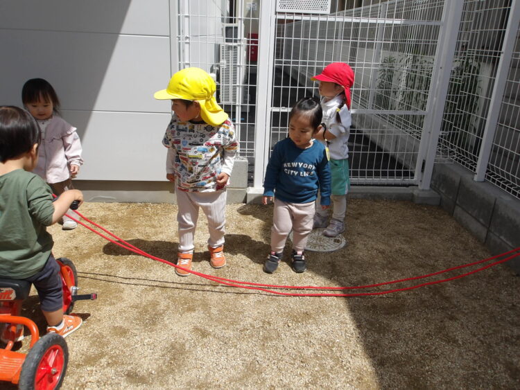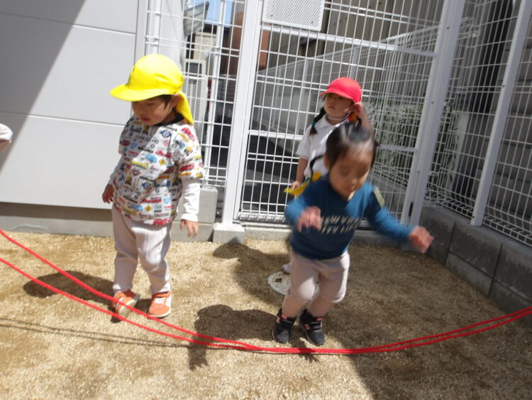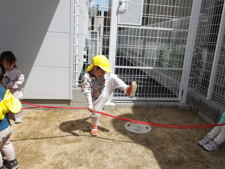 大きい組さんに混じってロープを超えるのにも挑戦。