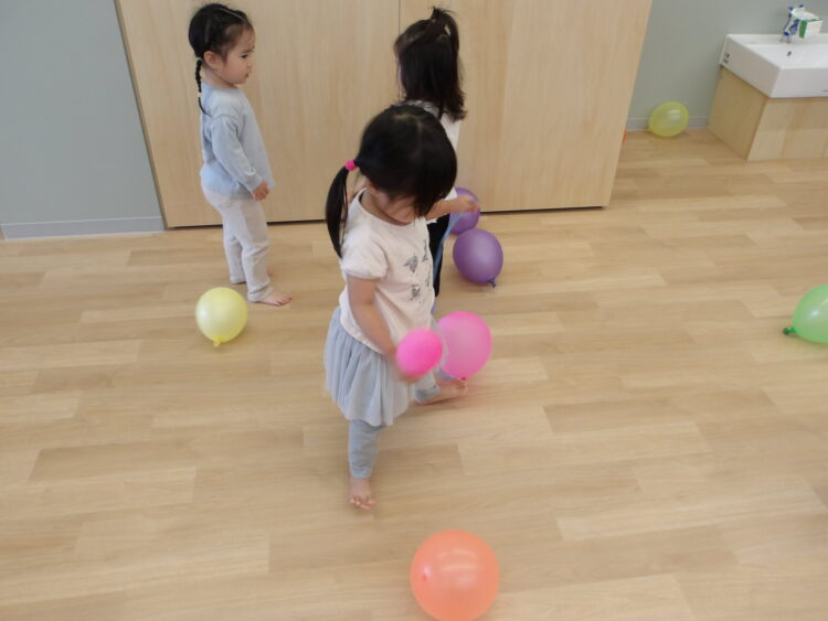 2つ、3つ風船を抱えたり、紐をつけて風船のお散歩をしたり、いろんな遊び方をしていましたよ![]()