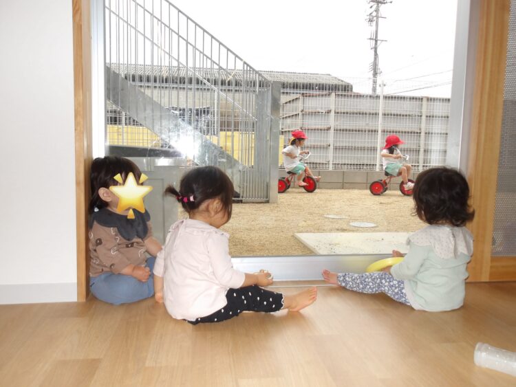大きい組さん、何してるのかなと一生懸命観察しています😆