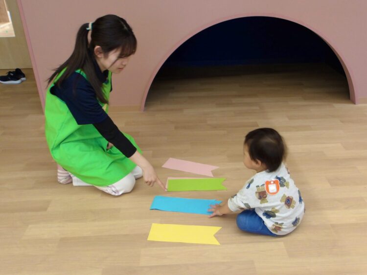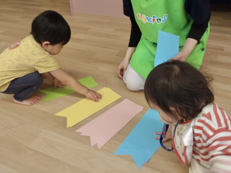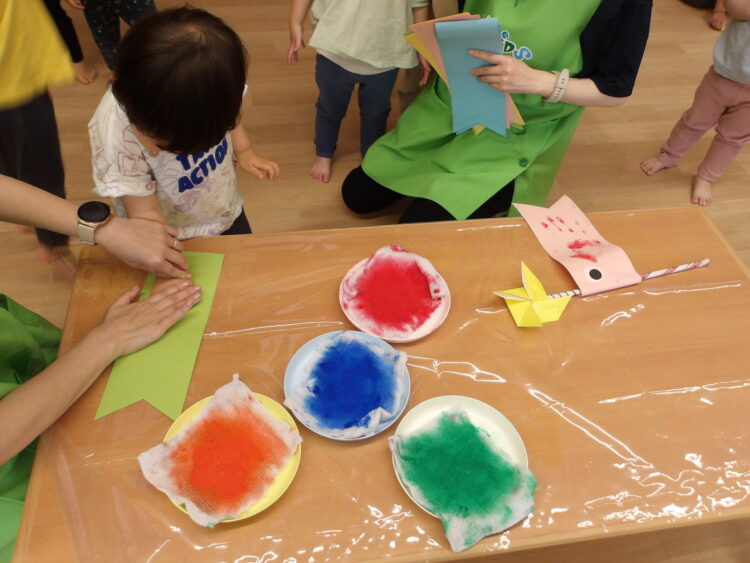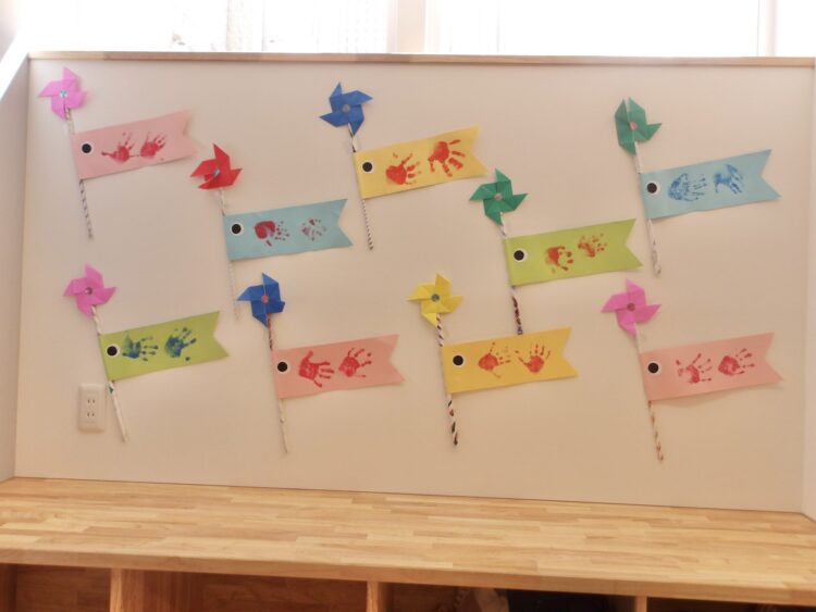 あひる組さん、うさぎ組さんが制作したこいのぼりを壁面に掲示しました![]()