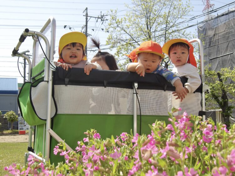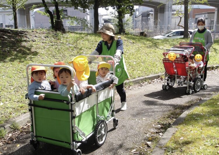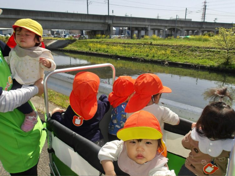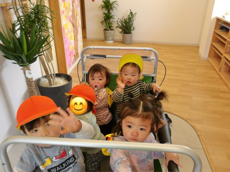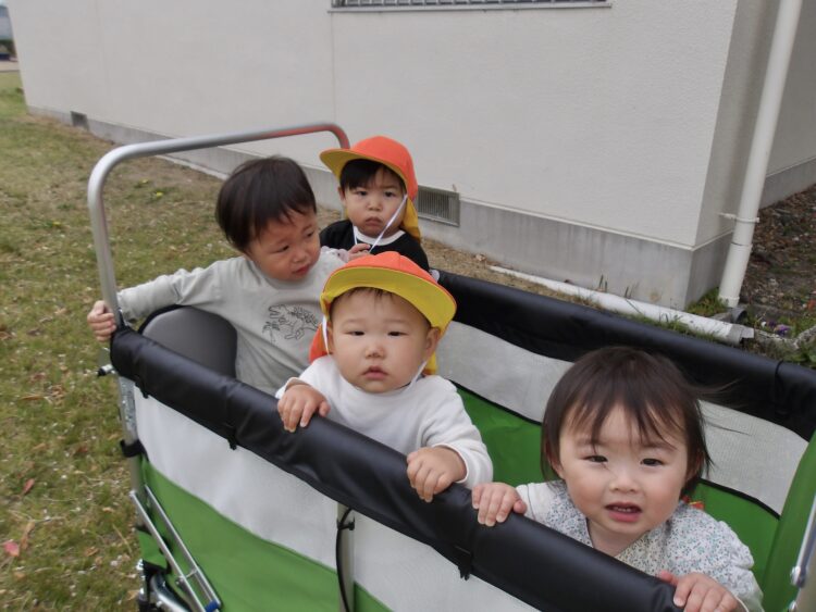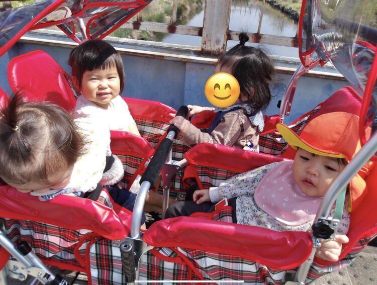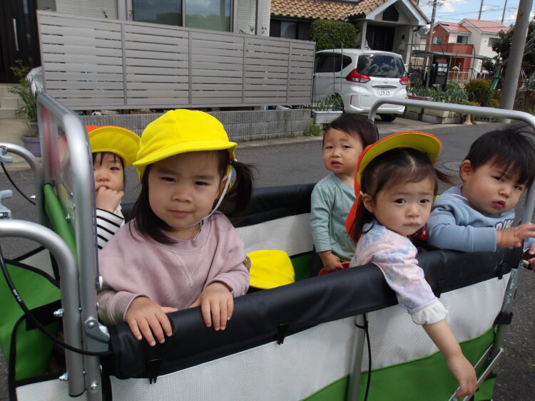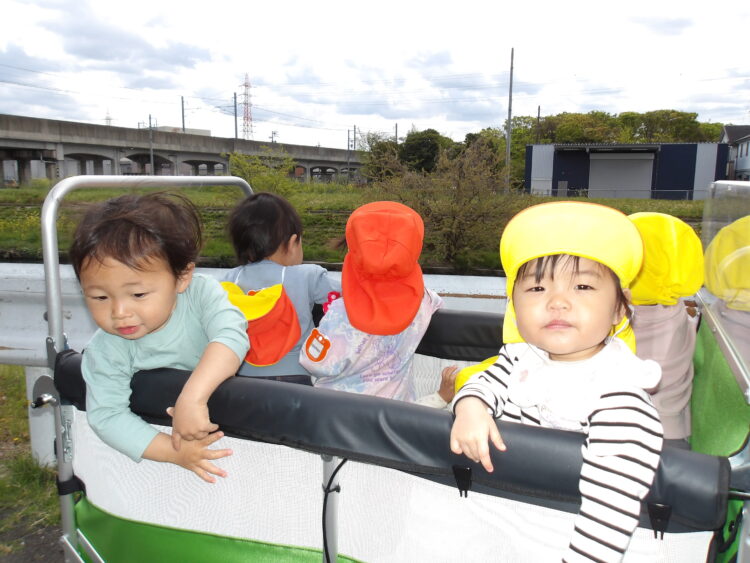 カートに乗りながら、鼻歌を歌っている子もいて、みんな気持ち良さそうにお散歩を楽しんでいました![]()