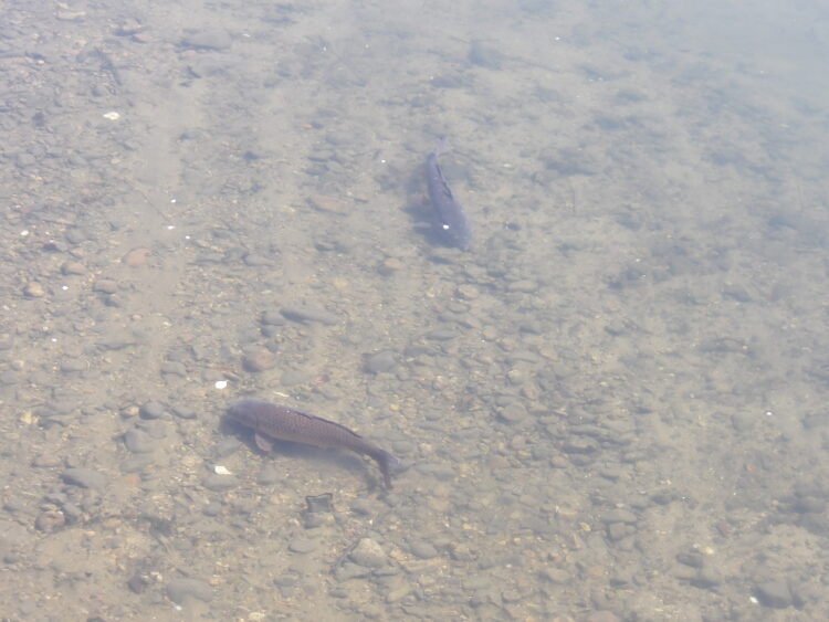 今日は晴れていたからか、たくさんの鯉が!指を指しながら、「うわぁ〜お」と歓声もあがりました![]()